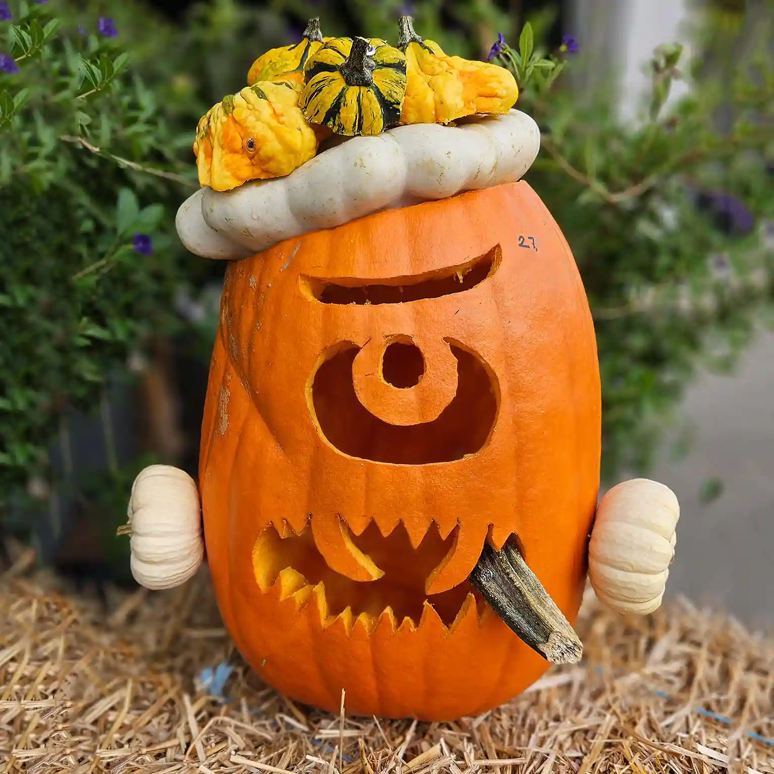 Kürbisschnitzen ist unser alljährlicher Teamevent, bei dem wir kunstvolle Werke für unseren Showgarten im Oktober schaffen. In diesem Jahr planen wir, den herausragendsten Kürbiskopf zu küren, und dafür benötigen wir Ihre Stimme! Der talentierteste Künstler oder Künstlerin wird mit einem Ehrenzertifikat ausgezeichnet, und als Wähler:in haben Sie die Chance, Gutscheine im Gesamtwert von 600 Fr. für unseren Online-Shop shop.seiler-gaerten.ch zu gewinnen.